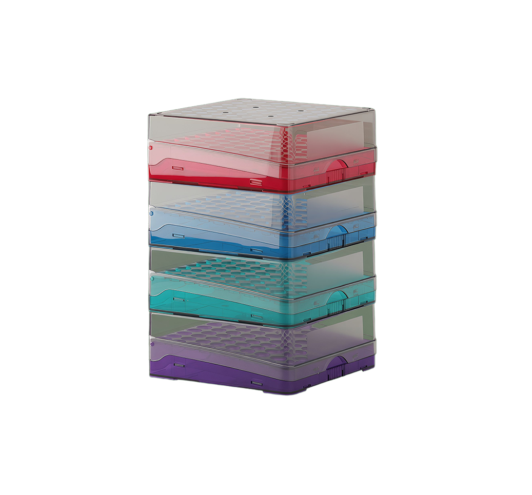 TENAK manufactures a wide range of laboratory freezer racks designed for optimal storage and organization in both upright and chest freezers, suitable for various sample types. They offer different rack types, materials (aluminum or stainless steel), and sizes to fit most standard freezers and storage boxes. Racks are primarily available in aluminum (Eco AluRack) or stainless steel (Classic and Comfort racks). Cryoboxes have a footprint of up to 136x136mm, and are available for various box heights including 32 mm, 50 mm, 75 mm, and 100 mm. They also offer options for MTP (microtiter plates) or SBS format plates and microscope slide boxes.