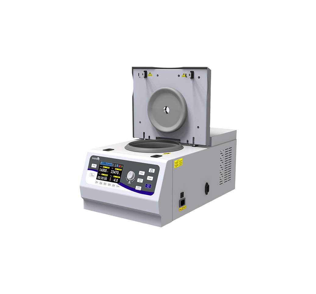 Radobiolab offers a range of laboratory centrifuges for applications in academic research and bioprocessing laboratories. Their product line includes mini, benchtop, high-speed, and refrigerated models, often featuring compact designs to maximize lab space: