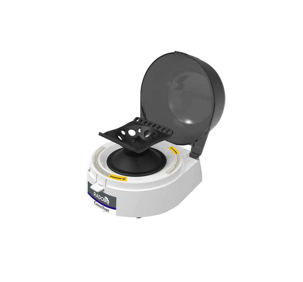 Radobiolab offers a range of laboratory centrifuges for applications in academic research and bioprocessing laboratories. Their product line includes mini, benchtop, high-speed, and refrigerated models, often featuring compact designs to maximize lab space: